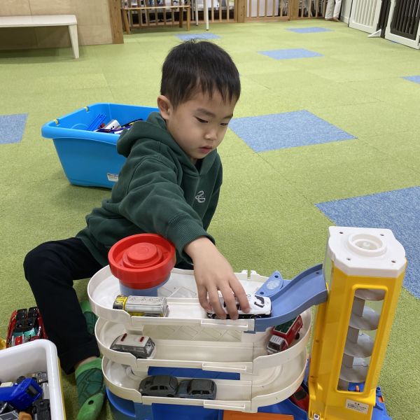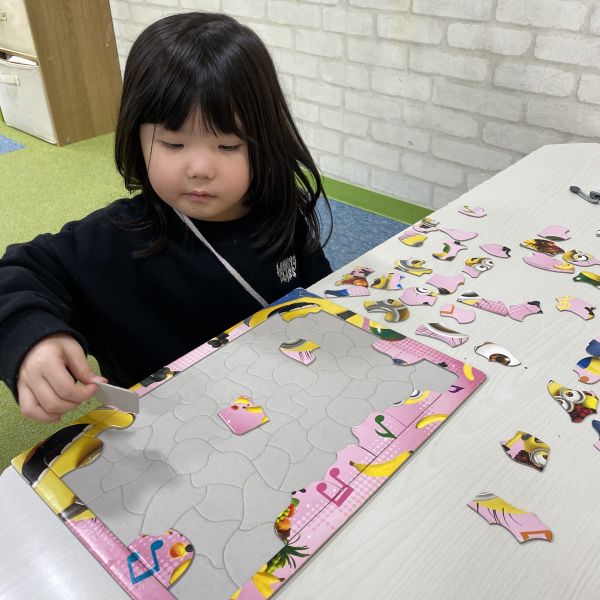 ぬり絵やパズルに夢中で楽しんだり、仕掛け玩具やトミカなど様々な玩具で楽しんでいました😊