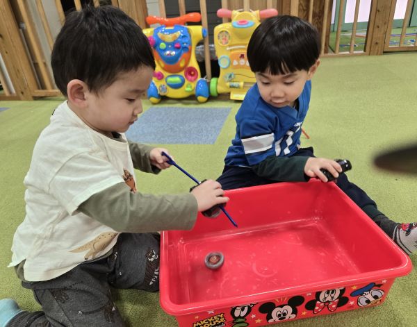 他のお友だちも側に来て、音の鳴る楽しさを共有し合い、