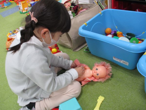 おかえりランドでお友だちが出来た子や、もともとお友だちだった子が一緒にぬり絵やブロック、おままごとで遊びとっても楽しそうでした🎶