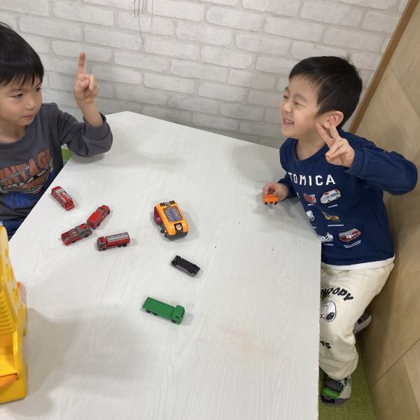 最終日の今日も初めましてや久しぶりのお友だちがたくさん遊びに来てくれて賑やかなおかえりランドでした♪大きいお友だちは小さいお友だちのことをよく気にかけてくれて、おもちゃを持って来てくれたり、一緒に手遊び歌をして遊んでくれる姿が見られました!ほかにも持参したゲームで勝負をして大盛り上がりでした!
