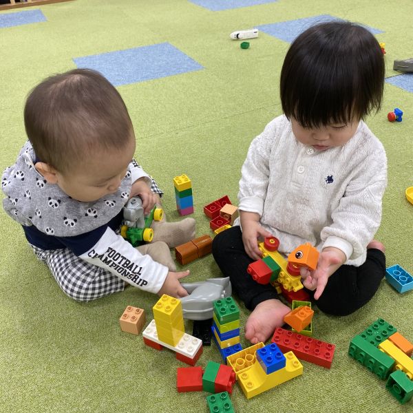 その後はゆっくりとお友だちが増え、泣き泣きの時間もありましたが、穏やかにマグネットブロックやミニカーで遊んでいました。