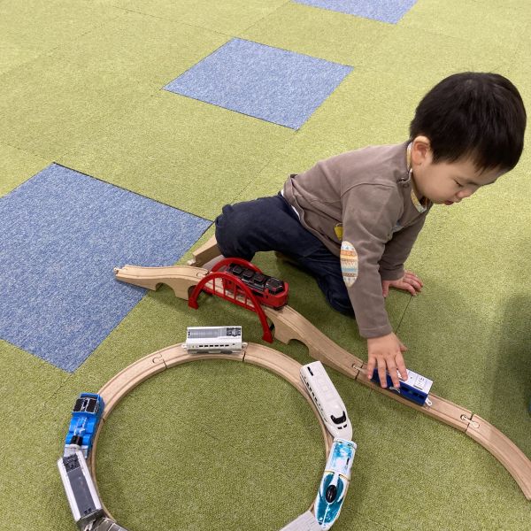 ママと離れるのが久しぶりで涙が出てしまいましたが、大好きな電車🚊で遊び始めると笑顔いっぱいになりました✌