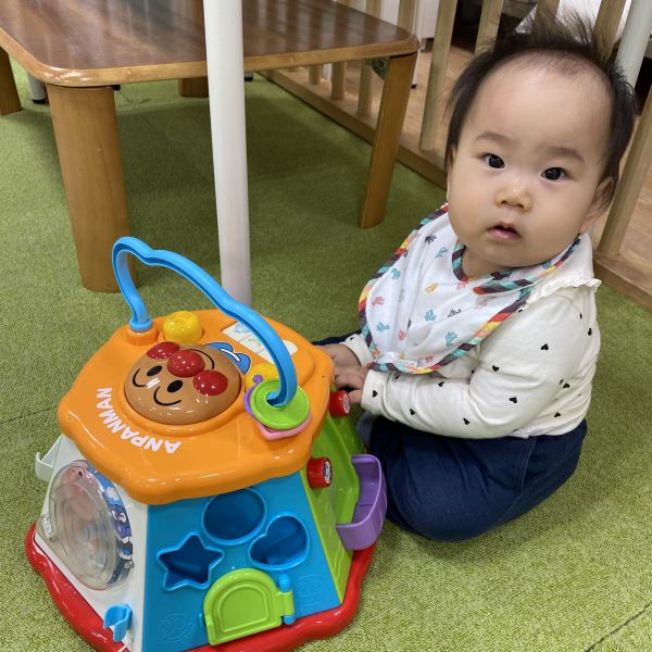 優しい気持ちが伝わったのか、いつの間にか泣き止み玩具で遊んでいました💓