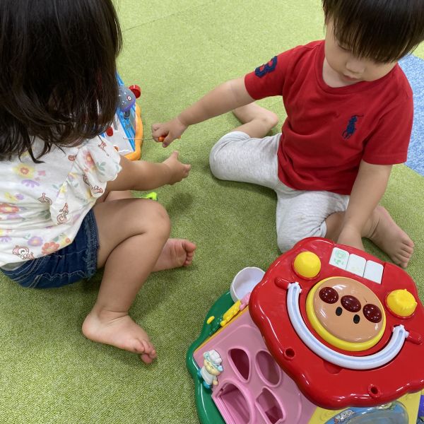 大きいお友だちは「一緒にあそぼ~」とお互いに声を掛け合ってすぐに仲良くなり、協力してアンパンマン知育トイの鍵開けをしたり、大きめのおもちゃで囲いを作って秘密基地作りを楽しむ姿が見られました!小さいお友だちも自分たちなりに思いを身振り手振りで表現したり単語を一生懸命発して保育者やお友だちに関わりにいこうとする姿にとても癒されました🥰🌷また一緒にあそぼうね!