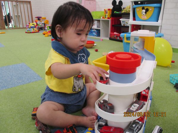 さて今日はゆったりチビッ子DAYでした🍼新しい1歳のお友だちも遊びに来てくれて、パパママとのバイバイが寂しくて、入室の際は涙が出ちゃいましたが、聞き慣れたお歌が聴こえてくると…🎵どこから流れてるのかな~?と気になり😆だんだんと楽しい気持ちに✨その後は、トミカやプラレールに夢中で🚘✨にこにこ笑顔も見せてくれました👀💖