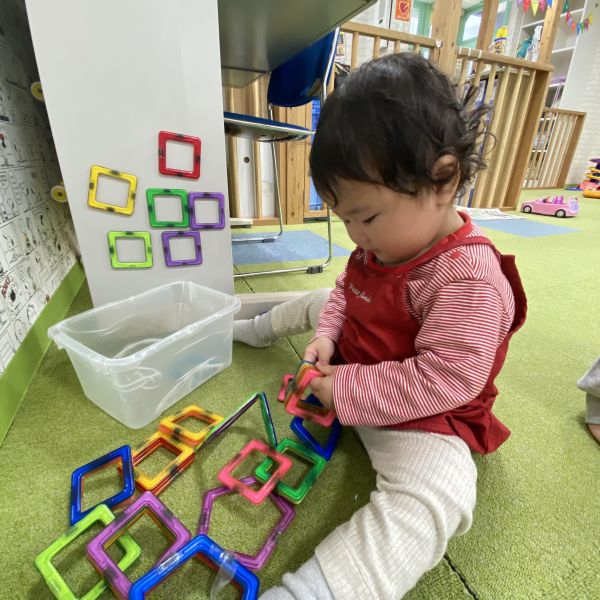 お母さんと離れてから涙いっぱいのお友だちが多かったですが保育士と一緒に過ごしながら、色々な玩具に興味津々ですぐに遊び始めるお友だちもいましたよ🎶