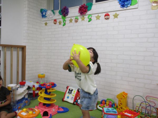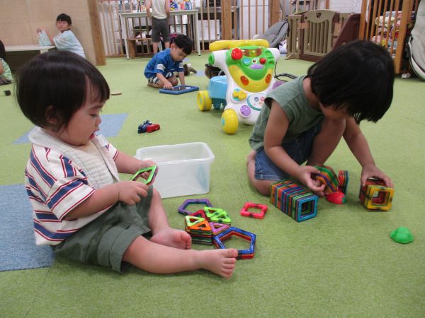 風船キャッチで一生懸命あそんだり、アンパンマンのメロディやリズムを楽しみながら仕掛けおもちゃで遊んだり、ランドのお兄ちゃんが遊んでいるマグネットブロックを見様見真似で一緒に遊んでいる姿がとっても可愛かったです🥰