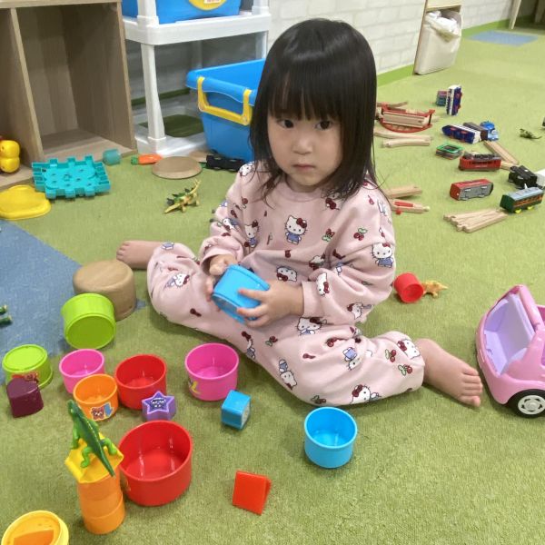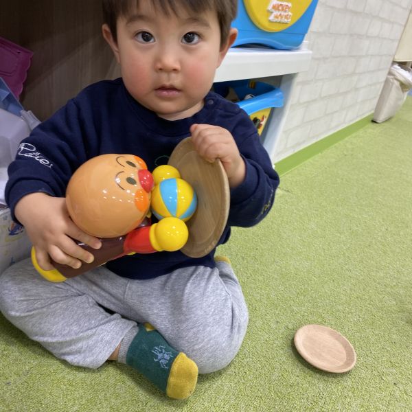 最初は、涙が出ていたお友だちもお部屋に入ってしまうとお友だちと一緒に立体駐車場のレール上をミニカーを走らせたり、同じ年齢のお友だちとままごとをしてお互いにご飯を「あ~ん!」と食べさせ合う姿がとっても可愛かったですよ🍽