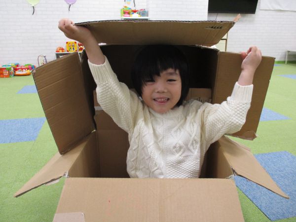 今日は、昨日に引き続きダンボールを子ども達はいろんな使い方をして遊んでいました。