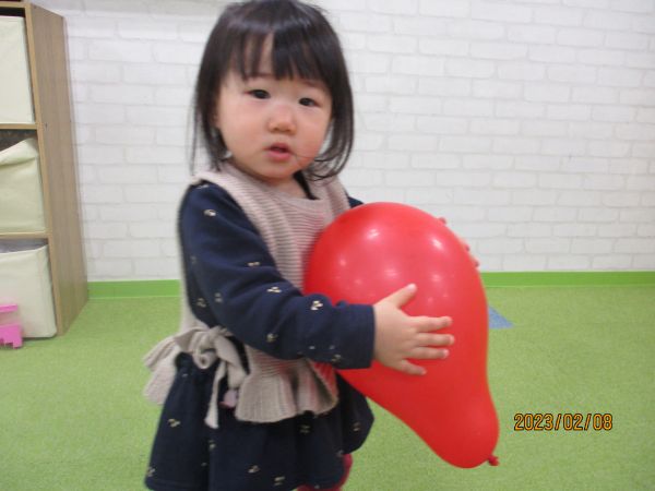 また、風船を投げて追いかけ元気に遊ぶ子や玩具で機嫌よく遊ぶ姿が見られました🎶
