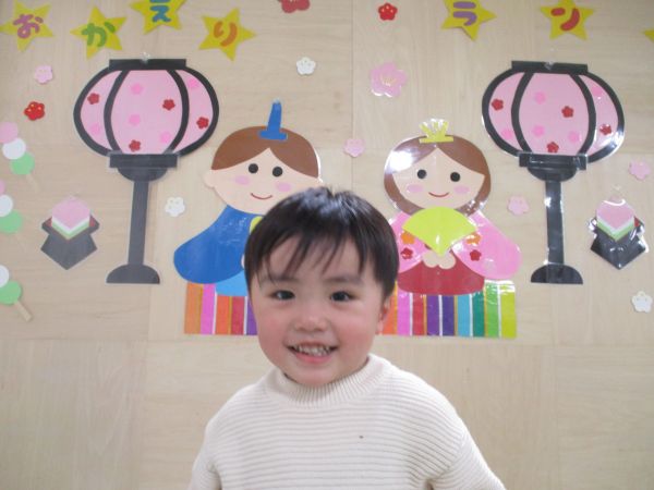 壁面がお雛様になりました✨お友だちにお雛様を指差して知ってるか聞くと不思議そうな顔でみる子や「パパ!!」と答えてくれる子がいました😄