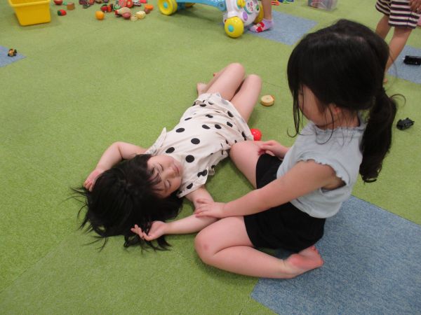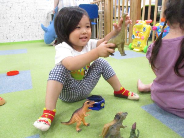 女の子達は、白雪姫の劇が突如スタート🍎「これは毒りんごよ☠」「今から寝るから起きたら結婚ね🥰」と可愛らしい会話をしながら話が始まり、途中「先生は小人役ね」と保育者に歌を歌いながらの小人役も任命し寸劇をしました👸小さいお友だちもその様子を側で興味深そうに見つめたり、恐竜ランドを作ったりとそれぞれの好きな遊びをして沢山あそびました🌟