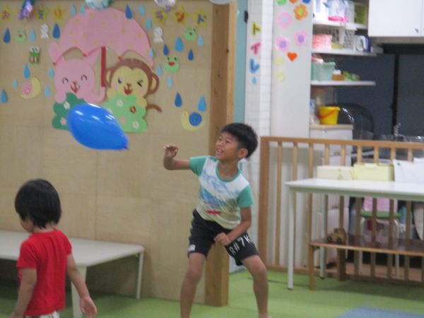 初めましてのお友だちもいましたが、バレーが好きという事で保育者と風船ラリー100回チャレンジ!交互に数を「1・2・3・・・」と数え汗をかきながら一生懸命ラリー!結果は・・・惜しくも87回でした~😂💦それでもとっても楽しそうに再開していました🎈
