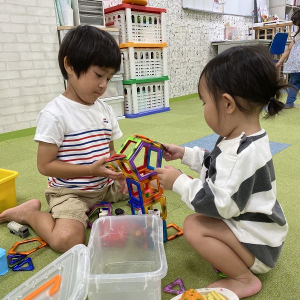 風船遊びで元気いっぱい身体を動かしたり、おままごとやマグネットブロックなどたくさんのおもちゃでみんなで仲良く遊びました☺