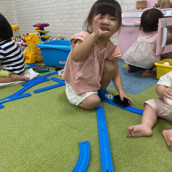 今日は朝からたくさんのお友だちが元気いっぱいに来園してくれました🌼初めてのお友だちも多く最初は涙が見られましたがお部屋に入ると初めての場所・おもちゃに興味津々!!自ら保育者の元を離れ知育トイに手を伸ばしボタンを押して音楽を流してみたり、音の鳴るおもちゃを手に持ちフリフリ♪👋`リン‘と音が鳴るとどこから鳴ってるのか不思議そうにおもちゃをのぞきこむ姿がとても可愛かったです♡「せんせ~」と呼びながら手を引き長く繋げたプラレールやペッパピグのお家を「じゃーん!」と披露してくれたお友だちも居ましたよ😽💕