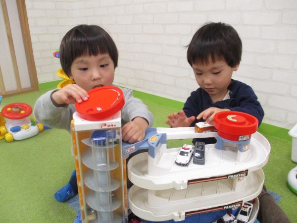 みんなで車の玩具で遊んだり、ボール落としやプラレールで遊び楽しんでいましたよ🎶