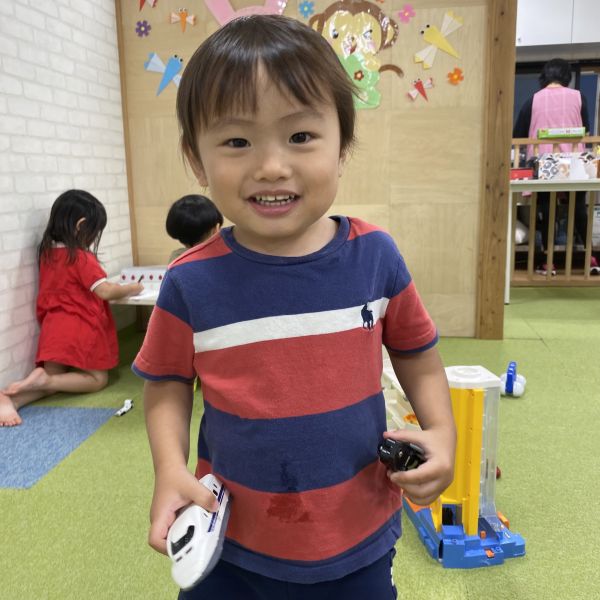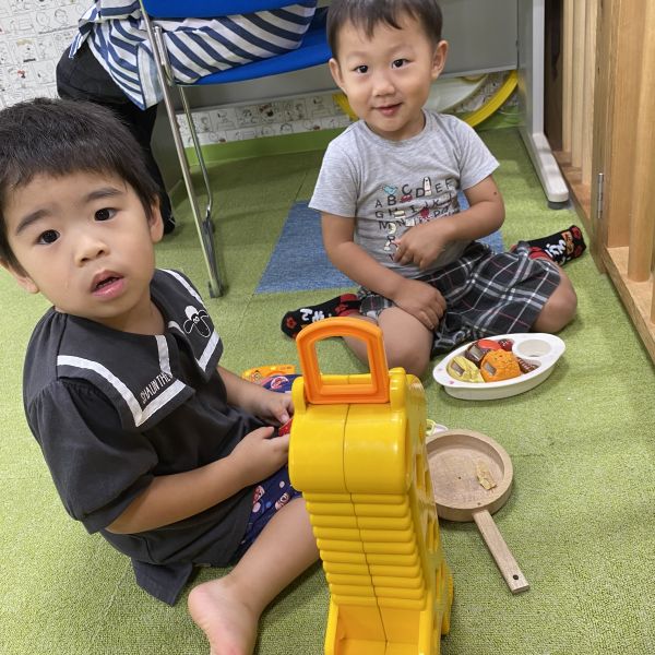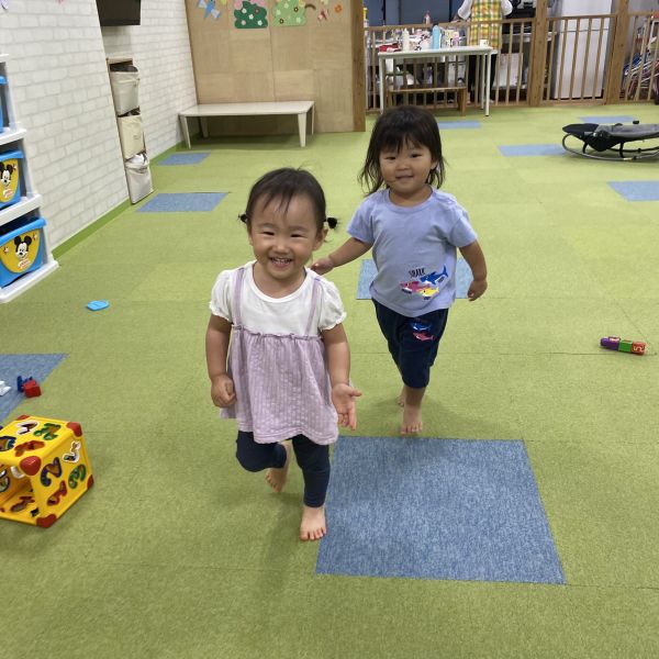 同じ年頃のお友だちが集まって、一緒に手を繋いでお部屋をお散歩している様子がありましたよ