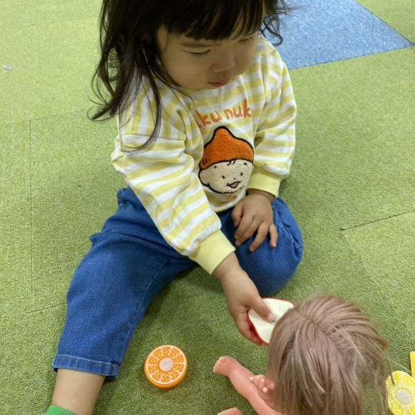 朝から"プニルンズ″というアニメの音楽に合わせてダンスをしたり、体を動かそうと体操をしていましたよ!小さいお友だちは仲良く塗り絵✍最近は小さいながらに物の貸し借りも上手に出来るようになってきて「どぞ!」とお互いに色鉛筆を渡し合う可愛らしい姿も見られました😆✨その後も皆でお部屋中を使って隠れんぼをして、お姉さんたちが小さいお友だちの手を引いて一緒に隠れてくれていましたが「もういいかい?」「もういいよ😆」で振り向くと可愛い足やお顔がしっかりと見えていて・・・知らないふりをして探しましたがとても癒される隠れんぼでした♥️🐻❄️