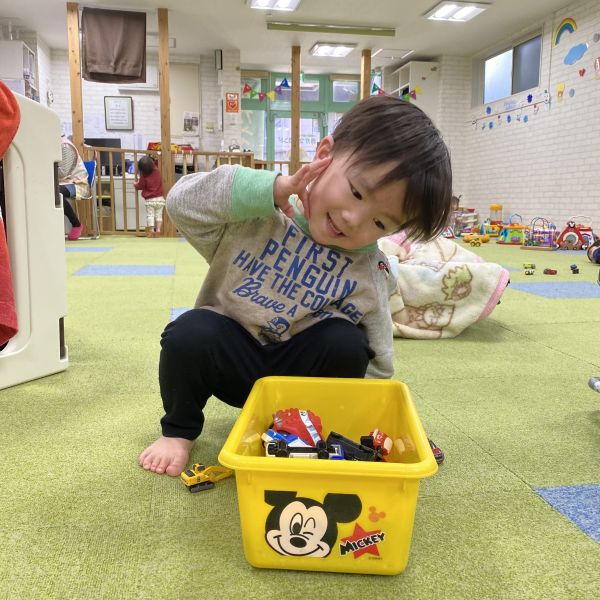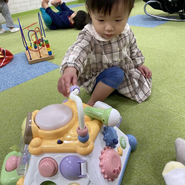 ぱぱ・ままと離れて涙がポロポロっと泣いていましたが、すぐにおもちゃを見つけて楽しそうに遊んでいましたよ😻