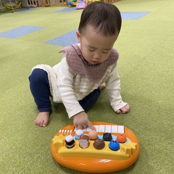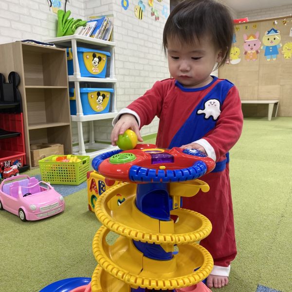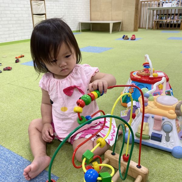 1歳児さんが多く涙が出ていたお友だちも居ましたがすぐに落ち着き、知育玩具や積み木などそれぞれ好きな玩具で遊んでまったりのびのびと過ごしていましたよ💓