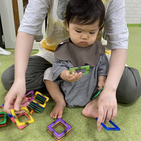 さてそんな今日は、のんびりランドでしたよ♡小さなお友だちが多く、先生といっしょにマグネットブロックをペタペタしてみたり、ボールをころころ~と転がして、ボールの追いかけっこが始まったりと💗楽しい一日でした☺