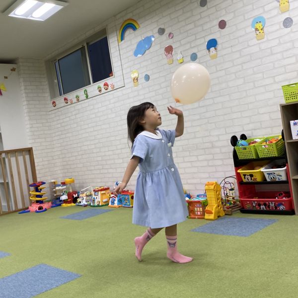 他のお友だちが遊びに来るまでの時間は保育士と一緒に広いお部屋でたくさん身体を動かして風船遊びを楽しみましたよ🎈