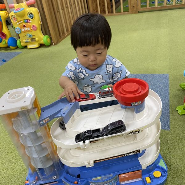 お昼前後の時間帯には少しずつ人数も増えてお友だちと仲良く絵本を見たり、たくさんのおままごとや仕掛けおもちゃなどで仲良く遊んでいました🎶