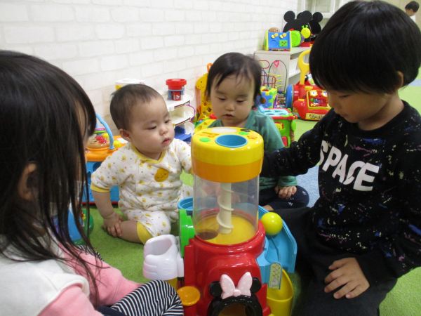 かくれんぼをしたり、以上児さんが未満児さんと一緒にボール落としで遊んでくれたりとみんなで仲良く過ごしました🤩