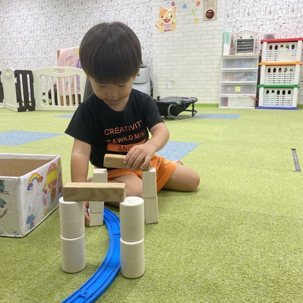 新幹線が好きな男の子は、プラレールのレールを上手に繋げ、周りに積み木でトンネルやタワーを作ってとっても楽しそうに遊んでいましたよ😊子どもならではの想像力にすごいな~と思う事がたくさんあります✨