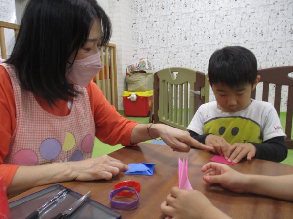 他にも先生と一緒に折り紙をしたり、風船遊びで身体を動かしたり♪いろんな遊びが広がっていました😆