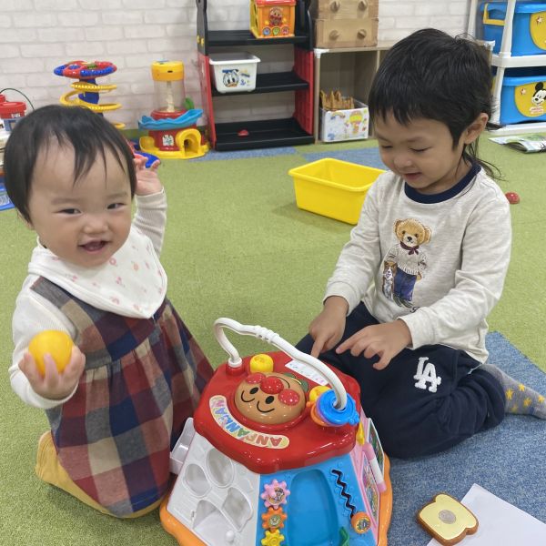 今日が振替休日だった小学生のお友だちと絵本がだいすきな2歳のお友だちは、一緒に『ものしり図鑑』を開いて、これは蝶々🦋、これはかたつむり🐌、これはてんとう虫🐞と、生き物の名前をお勉強♪2歳のお友だちは大きなおねえちゃんと遊べてとても嬉しそうな表情でしたよ😊