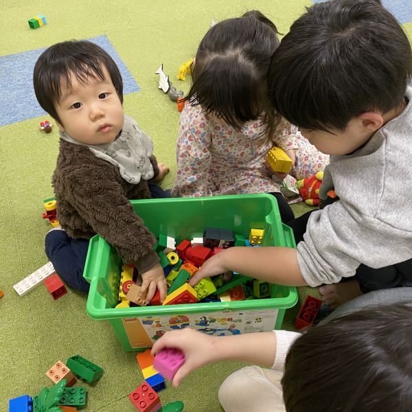 初めましてのお友だちもすぐに仲良しになり、一緒におままごとをしたり、ブロック遊びをしたりととっても仲よしな姿がたくさんみられました😊